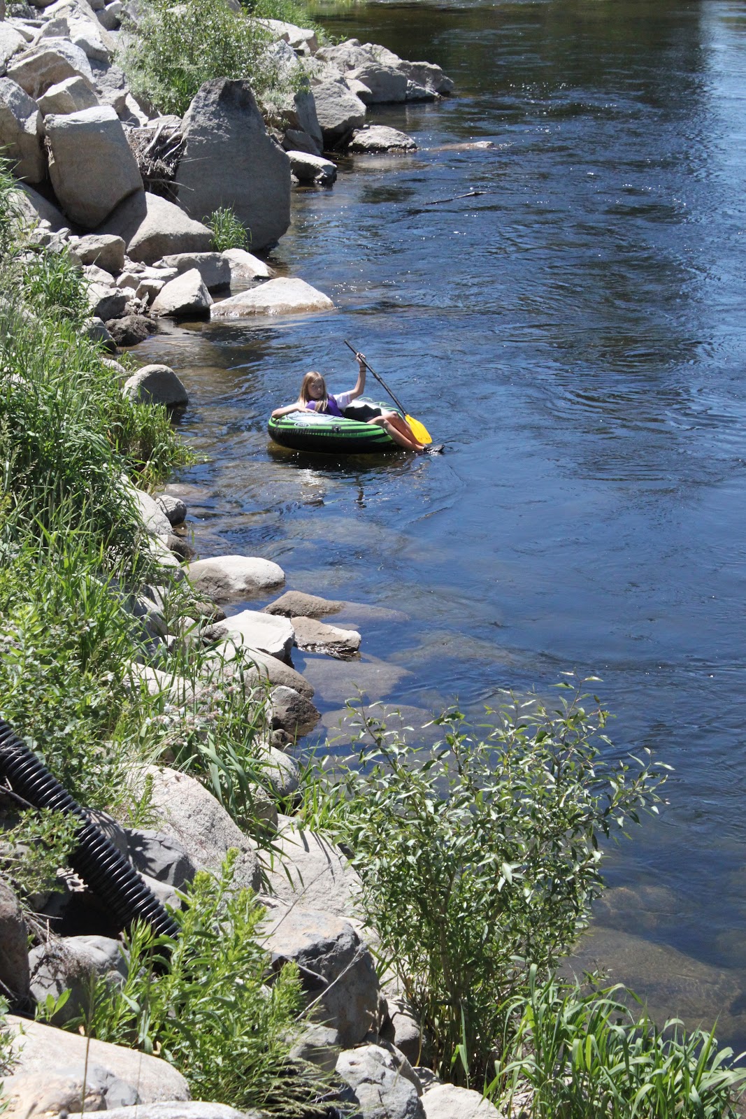 My sister Steph helping Cami with the frog.....I caught a picture of it jumping off of her!